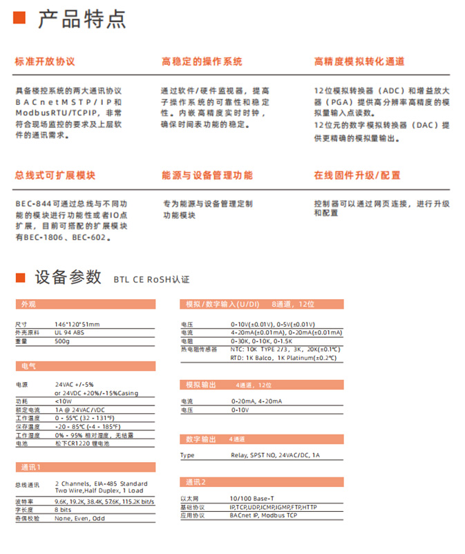 用户可选配不同点数的IO扩展模块,BEC-1806(18DI,6DO)或者BEC-602(6UI,2DO)。
